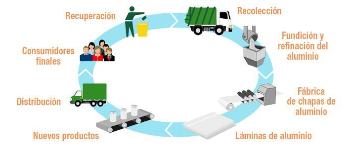 Se recogen productos de aluminio usados, como latas de bebidas, marcos de ventanas, papel aluminio, etc.